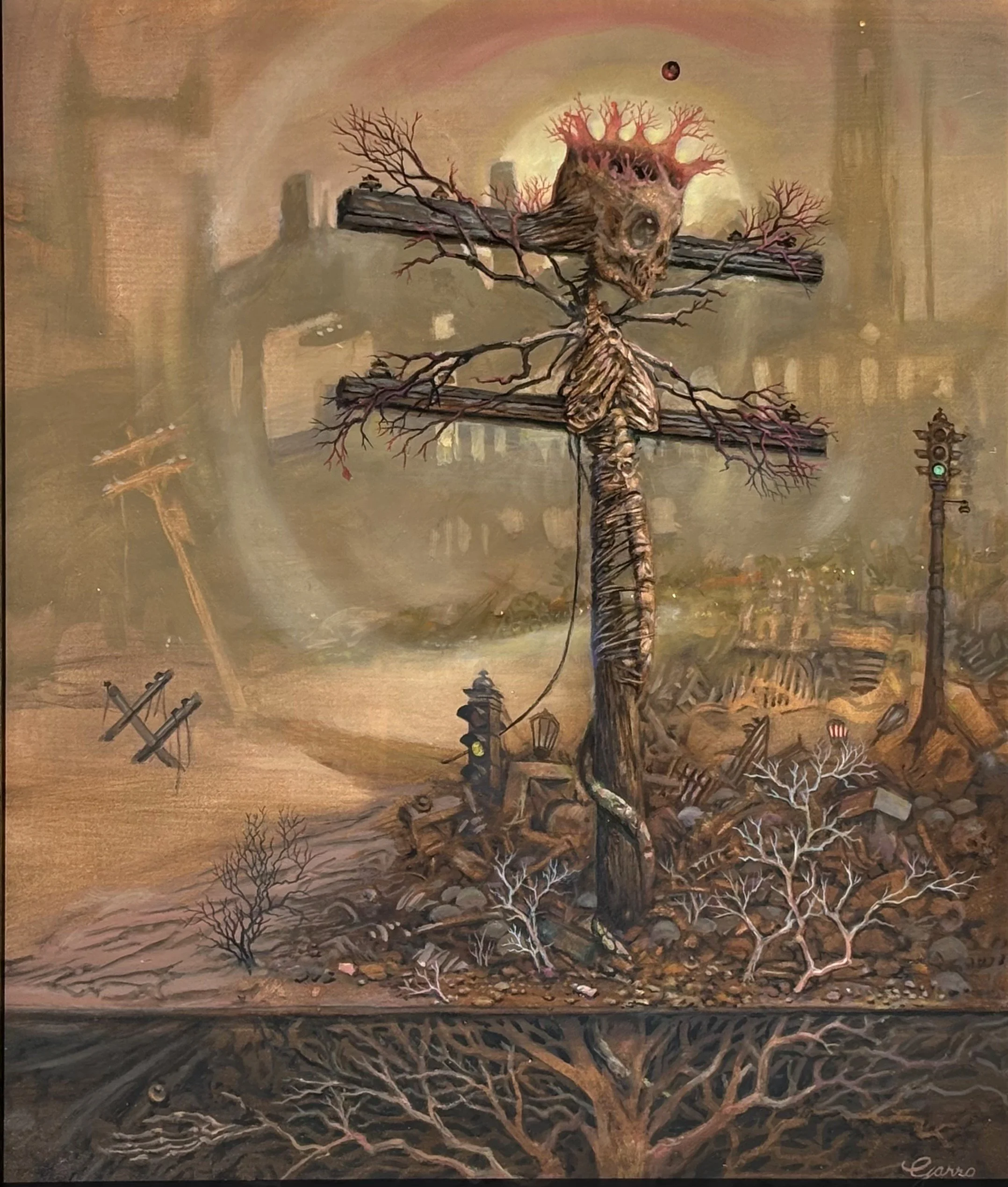 Garro’s work poses and answers a myriad of questions about Time, Evolution, Spiritualism and the Cosmos. He asks us not to just indulge his reality, but to also define our own. So treat your eyes, stimulate your mind, access your dream state and drink coffee at the same time. Welcome. Enjoy wandering through Garro’s alternate universe.