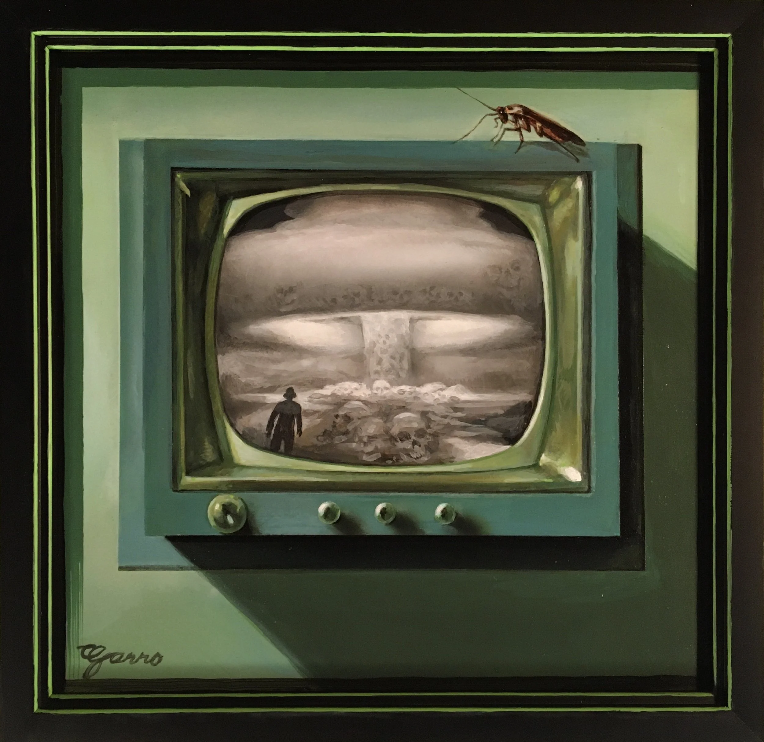 Acrylic on board in hand-made frame with Trompe L’oeil painted elements -